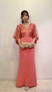 息子の結婚式で母親ドレスとして利用しました。