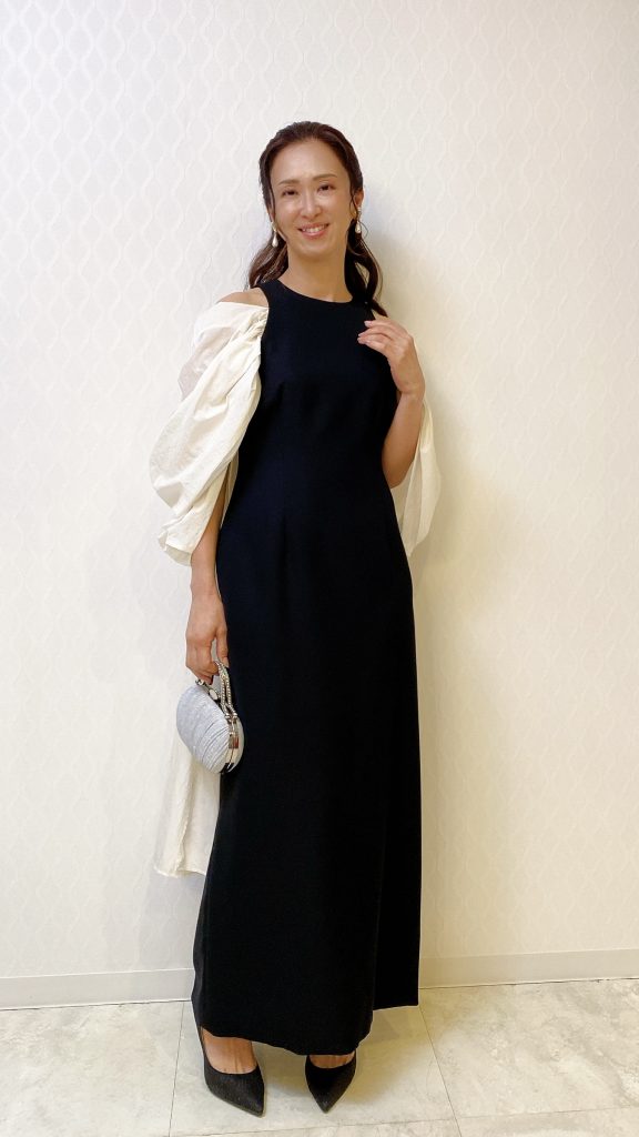 40代になり、コロナの影響もあって、なかなかお呼ばれの機会がなかったのですが、今回久しぶりに会社の後輩の結婚式へ参列させていただくことに。雅叙園に行くのは5〜6年ぶりかな?せっかくなので素敵なドレスを着たいなと思い、今回初めてドレスティークさんでレンタルをさせていただきました。年齢に伴い、レースやフリルなどの可愛いデザインが段々しっくりこなくなってきたので、格好いい大人っぽいドレスがあれば良いなと期待していたところ、こちらのドレスが一際目を惹きました。やはり黒色は落ち着きますね。シンプルすぎないおしゃれなデザインで、特に後ろ姿が気に入りました。来月の結婚式で着ていくのが、今からとても楽しみです。