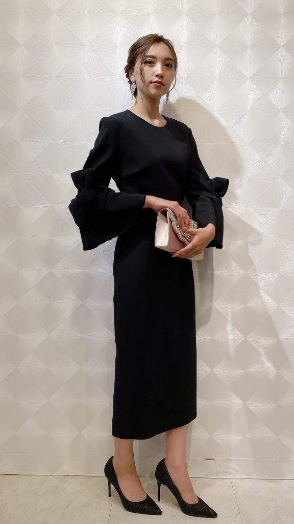 そんな注目ブランドのお取り扱いが当店でも始まりました❤️袖のビッグリボンが特徴の、シンプルながらもスタイリッシュなブラックドレスは、女性度を上げてくれること間違いなし◎