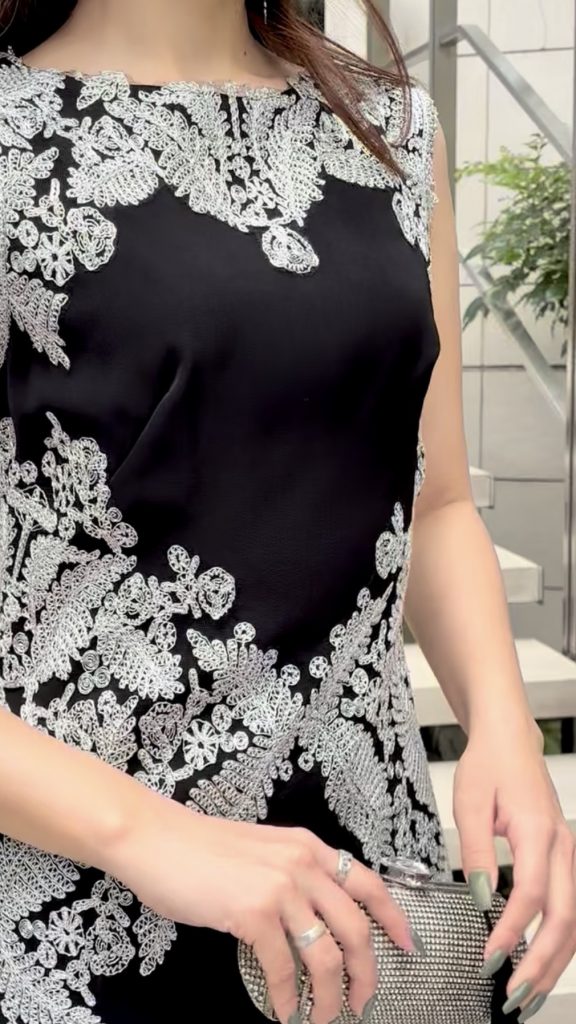 動くたびにシルバーがさりげなく輝き、照明の下でとても綺麗でした。