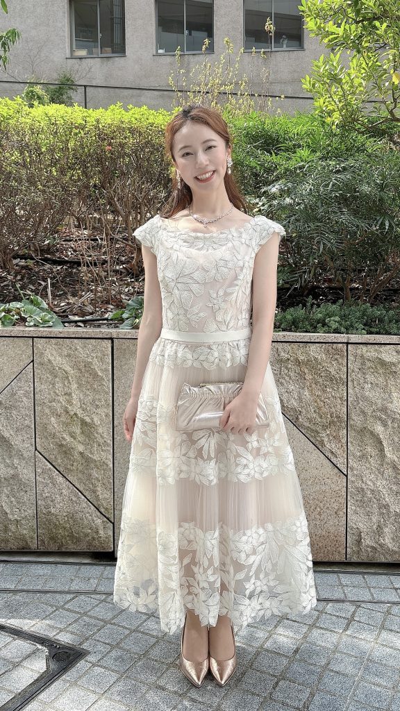 程よいドレッシーさと、エレガントさが融合されてとても良かったです。京都の料亭で行いましたが、雰囲気もマッチしており、写真映えもしたので、素敵な思い出になりました。着心地も楽ちんでした。今度は、友人の結婚式の参列でお願いしたいと思います。