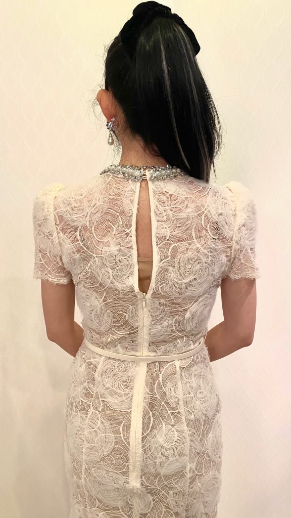 少しタイトな形も女性らしいシルエットを演出してくれるのでとても良く、薔薇のデザインがとても気に入りました。また機会がありましたらレンタルしたいです。