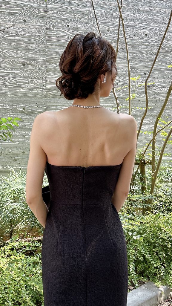 黒はモード感があり、二次会ドレスやパーティードレスとして人気。