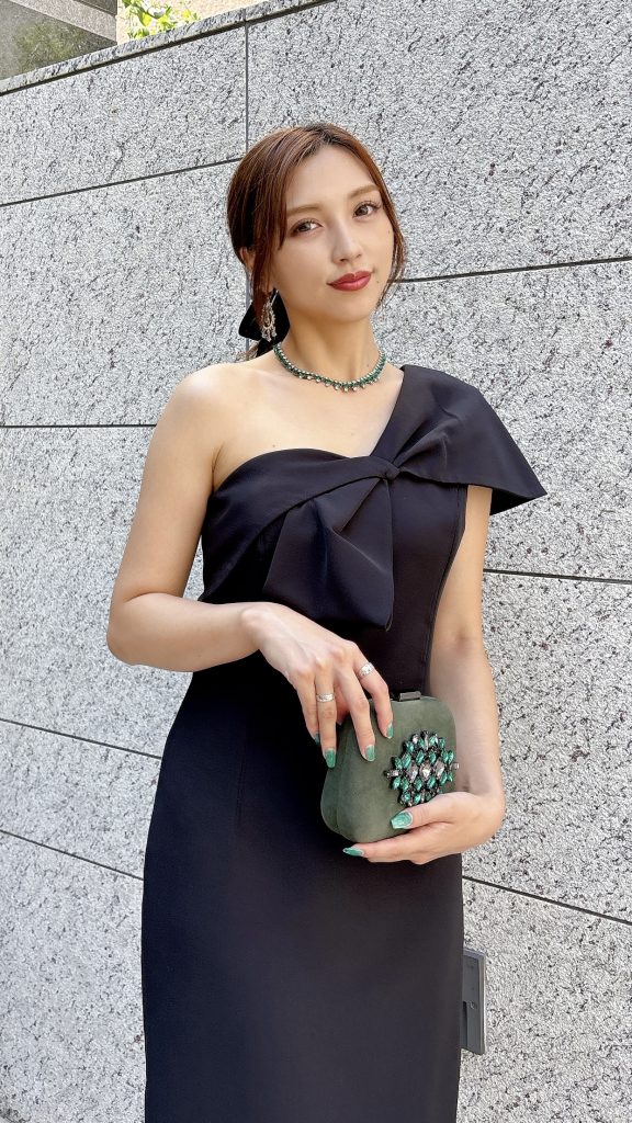 会社パーティーで着用しましたが、控えめながらも品格のあるデザインで、会場にもよく馴染みました。派手すぎないのに存在感があり、大人の女性にちょうど良いバランスだと思います。アクセサリー次第で印象を変えられるのも魅力でした。