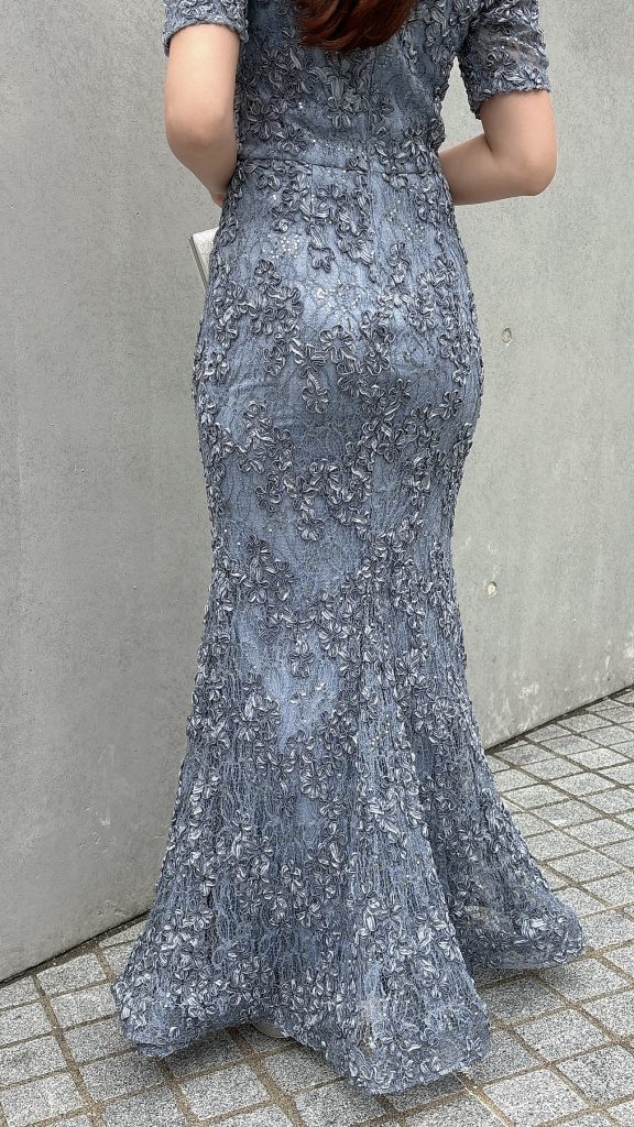 派手すぎず、きちんと格のある場にも安心して着られるドレスだと思います。