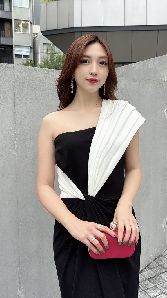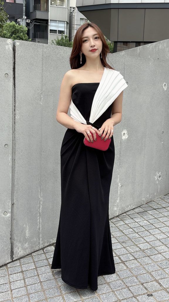 ガラパーティー用にお借りしました。コントラストの効いたバイカラーデザインが印象的で、会場でも「素敵なドレスですね」と声をかけていただくことが多かったです。適度な露出感で華やかさがあり、スタイルも良く見えたので、こちらのドレスに決めて良かったです。