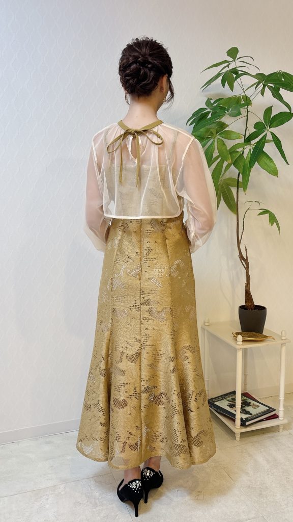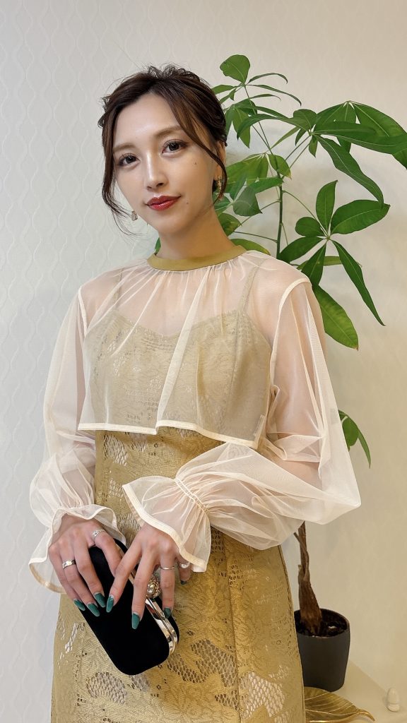袖は透け感があってイエローでも馴染みが良く抜け感も演出してくれます。