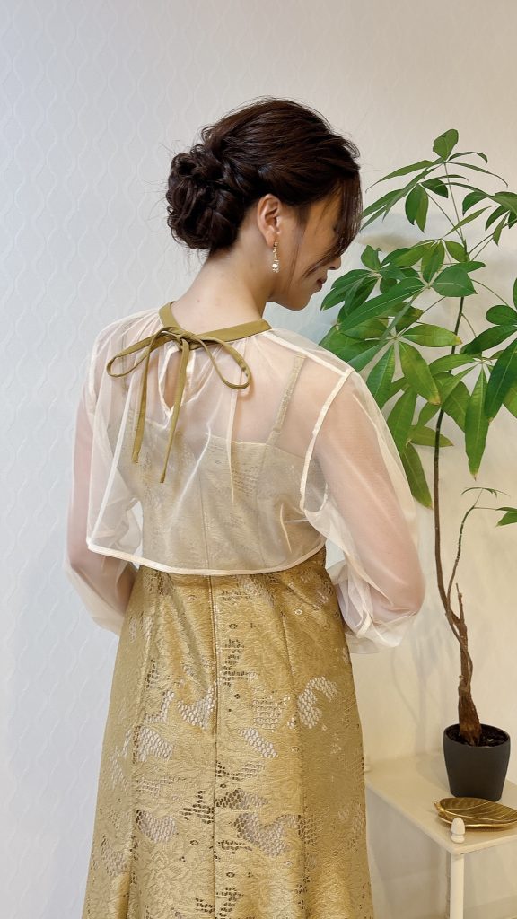 「イエローは目立っちゃうかも、、、」「着こなせるかな?」などもご安心ください!こちらのドレスはくすみイエロー寄りなので日本人のお肌の色に馴染んで可愛く演出してくれる1着になっております。