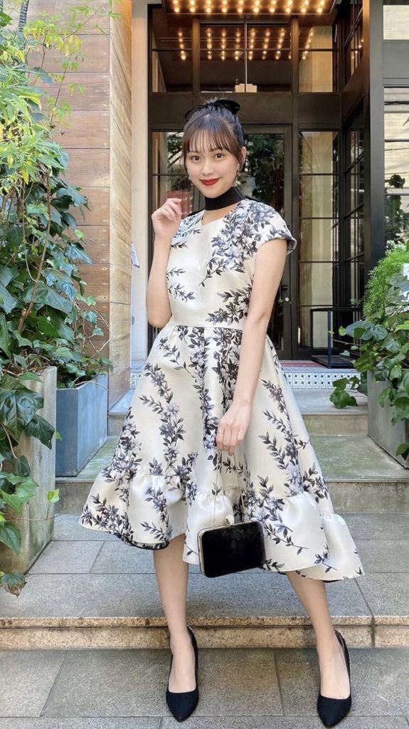 ガーリーな印象の花柄や、首元のリボンチョーカーなど、女の子の大好きが詰まったデザインではありますが、シックなカラーリングなので、甘くなりすぎません☆お小物に赤などの差し色を合わせていただくと、洗練されたコーディネートにまとまります。