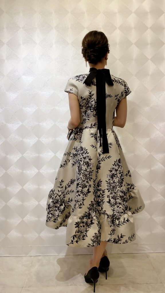 かなりデザイン的にも華やかなので、やや主役級なほどになります。また、ホワイトベースなので、ご結婚式のご参列というよりは、パーティや食事会、クリスマス会やガラパーティなどでのご利用がオススメです。