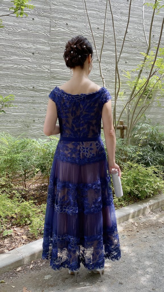 時間帯が夜でしたので、ややドレッシーなものが良いかなと思っており、何点か候補を着させてもらい、最後は家族と一緒にこちらに決めました。