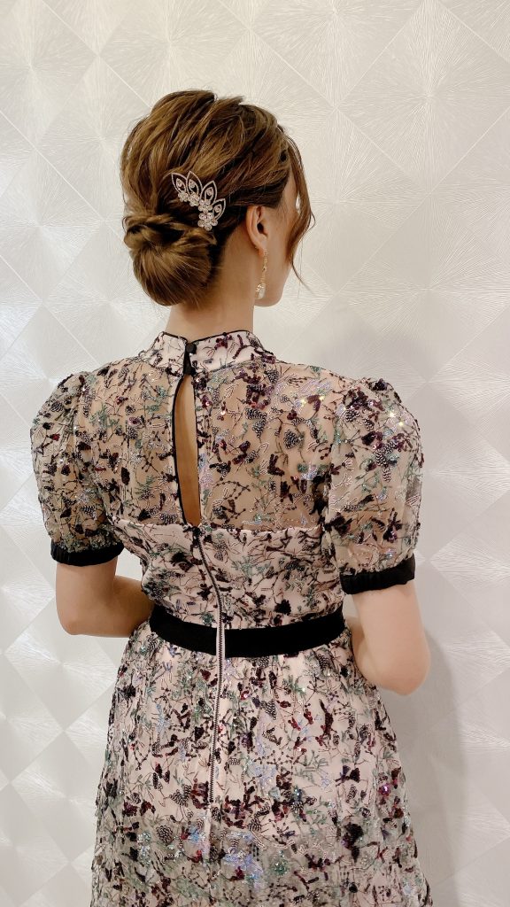 夜の結婚式の受付を頼まれていて、もう一人は振袖だったので、思い切って華やかなデザインを選んでよかったです。